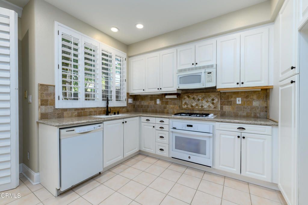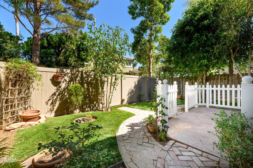 Live your best life the sought-after development of Los Arboles! A golden opportunity in the Mission Oaks area of Camarillo for a desirable end unit that is situated on a premium lot with no units behind! This beautiful townhouse features 2 bedrooms, 2.5 baths and a builder-option loft that's ideal for home office, playroom or studio, and can be converted into a 3rd bedroom if or when your needs require. A floorpan that is laid out in fine fashion fits a sweet spot ideal for couples, small families, move up buyers, empty nesters, professionals or investors, and lends to comfortable living for every day, casual and formal occasions. John Thomas Wood Shutter window treatments let natural light flood in, and the uniquely charming, bronze chandelier adds a fine touch of ambiance in the formal dining area. Recent renovations include the primary bath shower and freshly installed oven in the kitchen, which boasts quartz countertops with travertine tile backsplash, oil-rubbed bronze fixtures, drawer/cabinet pulls, single panel cabinetry/drawers, and recessed lighting. Crown moulding and high baseboards throughout aesthetically please the eye. Central air conditioning and ceiling fans in the family room and primary bedroom comfortably cool in warm summer months. Relax in the private, park-like back yard with water-wise synthetic grass while enjoying sunset colors filtering in, which are also seen from the Primary Bedroom. The home also features engineered hardwood and tile flooring throughout, gas fireplace, an owned Life Source whole-house water purification system, and convenient direct entry from the 2 car garage. Community amenities include a pool, spa, playground and RV lot, and guest parking is advantageously across the street from this home. Nearby restaurants, businesses, freeway access, Calleguas Creek Bike Path, Camarillo High School and the historic Camarillo Ranch House make for an ideal location!