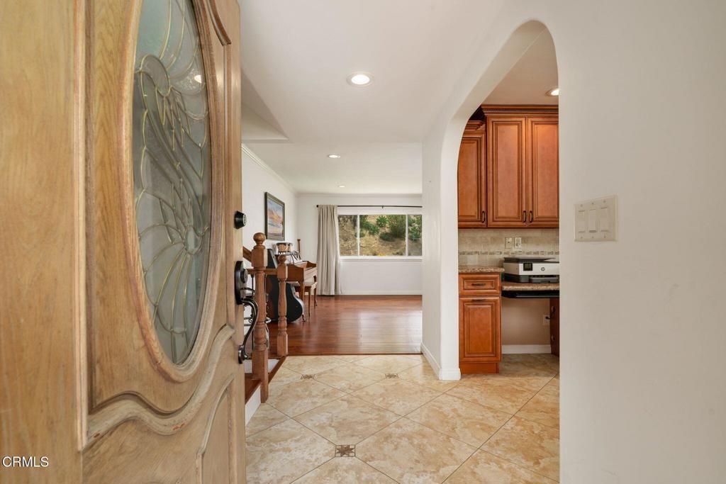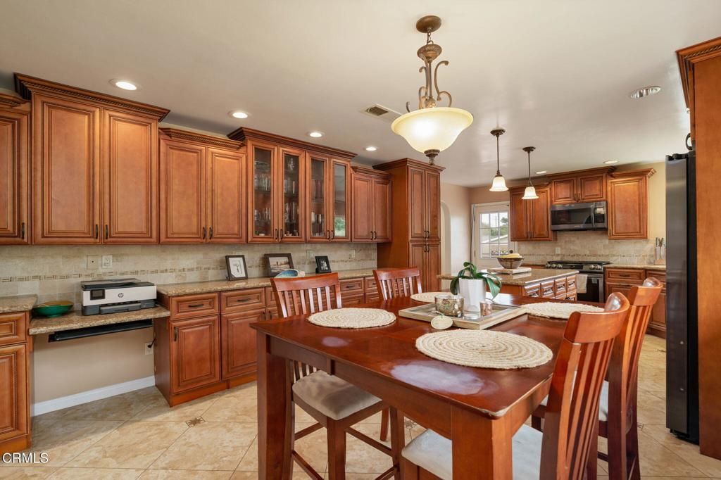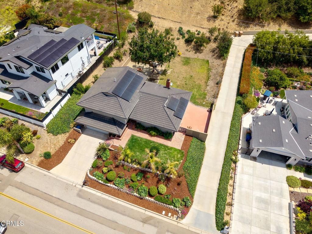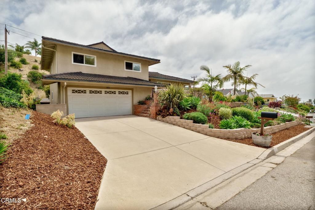 Rare opportunity! This exceptional 4-bedroom, 3-bathroom split-level home offers 2,500+ sq ft on nearly 0.5 acres in prestigious Ondulando. Entry level features gourmet kitchen with island, open-concept living/dining with peek-a-boo ocean views and upgraded solar system. Ground level includes 2-car garage, oversized bedroom with full bath, wet bar, and direct backyard access with built-in BBQ. Upper level features 3 bedrooms including primary suite with en-suite bath.Premium amenities include solar with battery backup, wood-burning fireplace, and expansive backyard with stunning ocean views from upper property. Optional membership to exclusive Ondulando Club (0.25 miles) with pool, spa, clubhouse, tennis, pickleball, and basketball courts. Move-in ready with modern updates in sought-after Ventura foothills location. Perfect for entertaining, multi-generational living, or investment opportunity.