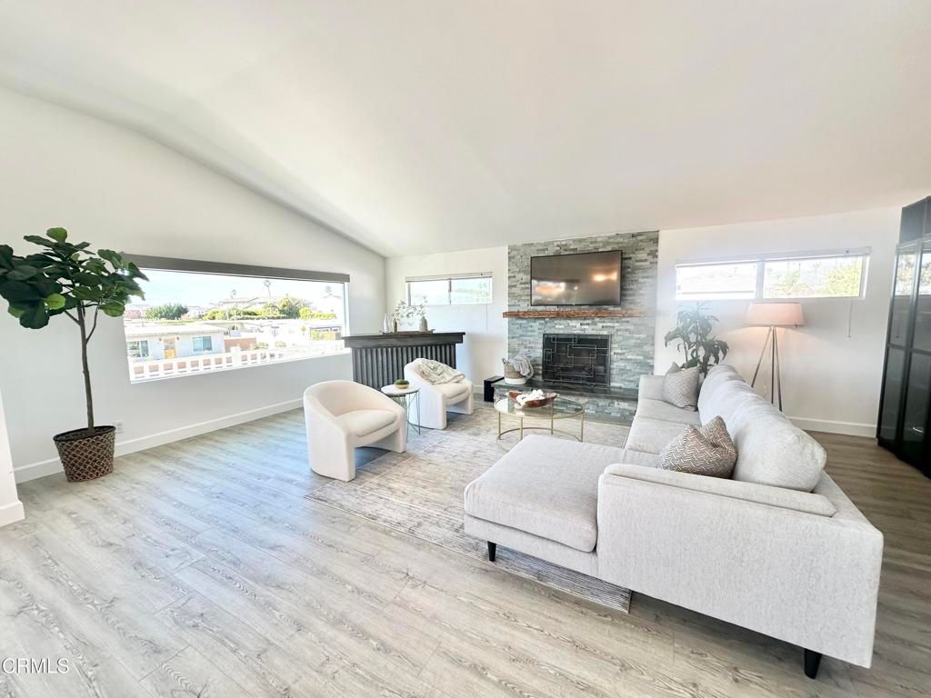 Idyllic California Coastal lifestyle! Enjoy the ocean breeze, walk your dog just 2 short blocks to Marina Park and 'the Mermaid' or down the lane directly to your private neighborhood beach. Local attractions are plenty, with Leo Robbins Community Sailing Center or ride your bike to the restaurant district at the end of Seaward Ave. Welcome to 2827 Pierpont Blvd, in one of of Ventura's most desirable seaside neighborhoods. Upstairs features open concept living room with Core-Tec flooring, beautiful rustic hearth and fireplace, picture windows facing Pierpont, remote controlled shades, and the slider takes you to the balcony to enjoy afternoon scenes and sunsets. Dining area has custom lighting, LG dishwasher, Kitchen Aid oven with Wifi connectivity, 4 burner gas stove, stainless sinks, beachy back splash, and a walk in pantry! Primary bedroom with tall ceilings, views of Two Trees, attached bath with custom sinks, lighted mirrors, walk in California closet with full organizers with jewelry drawers. Spa-like shower with frosted doors. Luxurious Victoria and Albert limestone tub. Marble floors top off this gorgeous Primary bath. Second upstairs bedroom with en suite bathroom with bathtub/shower combo. All 4 bathrooms have been remodeled. Downstairs features a fully functional ADU, freshly painted, private entry, full kitchen, 4 burner stove with oven, refrigerator, cabinets for storage, bathroom with shower, vanity and sink, walk in closet, living room with slider to backyard, laundry room with utility sink. Living room with slider to backyard, large laundry room with utility sink. Another storage closet in foyer with pocket door! Two car attached garage with wall to wall built in storage cabinets, and more storage shelves. Added bonus includes a 240 volt electric car charger, and 23 home solar panels for EV 'driving on Sunshine' . Outside, the property offers large patio, fire pit, Hotsprings Hot Tub, privacy with large trees, garden shed and dog run, making the back yard a great place to relax and enjoy your day. If you are looking for a weekend retreat, investment property or a primary residence this location is ideal, provides beach lifestyle and luxury living.
