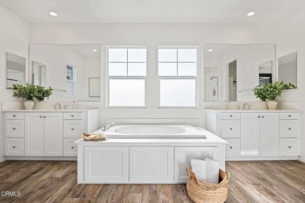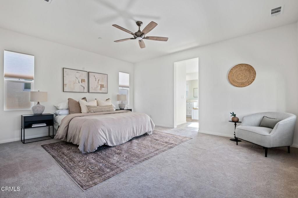 Introducing a dream retreat in Ventura's Solana Heights. This modern yet elegant 4-bed, 3-bath home offers 2,604 SF of bright, open living with luxury vinyl plank floors and a great flow for everyday life or entertaining. The kitchen features granite counters, a large island, and pantry, opening to a private garden with a fire pit, stamped concrete and avocado tree. Built in 2018, the home includes a downstairs bedroom and bath plus an upstairs loft perfect for a second living area or office.The spacious primary suite offers high ceilings, great light, a soaking tub, dual vanities, glass shower, and a large walk-in closet. The two-car garage features epoxy flooring and extra space for storage or reimagining. There's also an astroturf side yard dog run and a nearby community dog park. Close to a community playground, trails, bike path to the beach or Ojai, C Street surf, downtown Ventura, beaches, and the best of the Westside. A rare opportunity in one of Ventura's favorite newer neighborhoods.