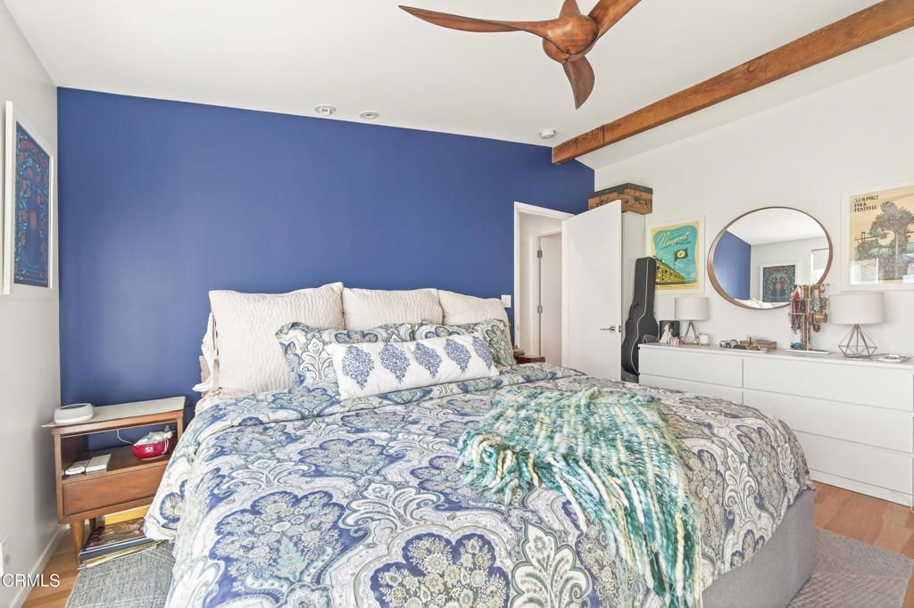 One block from the sand, this refined coastal retreat captures the essence of elevated beach living--where modern luxury meets the laid-back rhythm of the coast. Located just 11 homes from the shoreline, 1040 Dover Lane offers a rare blend of thoughtful design, turnkey condition, and effortless seaside lifestyle. Reimagined from the walls in between 2018-2021 with all permits finalized, this single-level residence was crafted with intention, quality, and flow in mind. The open-concept living, dining, and kitchen areas are filled with natural light and cooled by gentle ocean breezes from the west, creating an inviting space that feels both airy and grounded. At the heart of the home, the designer kitchen anchors everyday living and entertaining alike. Custom cabinetry, white quartz countertops, a waterfall-edge island, and classic subway tile set a timeless backdrop, while the professional Thermador stainless steel gas range and hood elevate the space. A custom sea-inspired tile backsplash adds a subtle pop of iridescent color--an understated nod to the home's coastal setting. Beamed ceilings in the living room and primary suite add warmth and architectural character, enhancing the home's relaxed surf-town aesthetic. Dual-pane windows throughout, including select jalousie-style windows, invite fresh air and frame peaceful backyard views.The primary suite is a serene retreat, featuring a spa-inspired bathroom with heated floors, a freestanding soaking tub, walk-in shower with frameless glass, and dual-sink vanity. High clerestory windows above the vanity flood the space with natural light while maintaining privacy. A walk-in closet and direct access to the backyard complete the suite, offering seamless indoor-outdoor living. Step outside to a private, fenced backyard designed for easy enjoyment--perfect for outdoor dining, evenings around the firepit, gardening, or simply unwinding after a day at the beach. Low-maintenance landscaping keeps weekends carefree. A rare find this close to the coast, the property offers parking for up to three vehicles in the driveway, in addition to a single-car garage currently used for storage and laundry, ideal for surfboards, bikes, and beach gear. The front patio area can easily be converted back to garage parking if desired. An additional storage space with electrical service at the end of the driveway adds even more flexibility.Turnkey, extensively upgraded, and ideally located near walkable restaurants, parks etc.