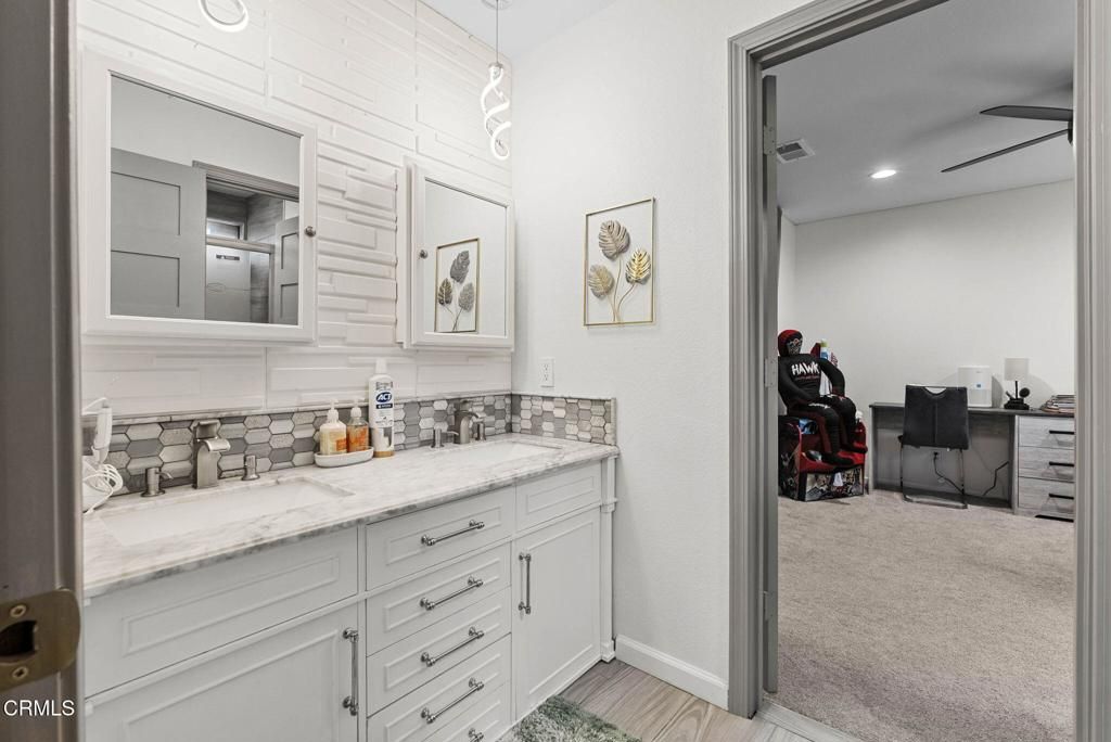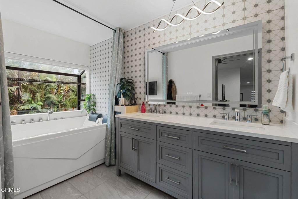 This is one of the biggest homes in the most sought-after neighborhood, Woodside Greens. This beautifully updated home features three fully renovated bathrooms, complete with rain shower heads, bidets, and a two-person jetted tub in the primary suite, plus a wall-mounted TV for a spa-like retreat. The kitchen has been refreshed with all new stainless-steel appliances, a new sink and faucet, recessed lighting, stove-top with built-in exhaust fan, and three modern pendant lights. Additional upgrades throughout the home include new interior and exterior paint, removal of all popcorn ceilings, new flooring, recessed lighting and ceiling fans in all living areas, bedrooms, and kitchen, new doors, window shades, a statement chandelier, and wood wall panel accents at the first fireplace. Water filtration system- newly serviced. Major system improvements include new garage door openers with remotes and back up batteries, an energy-efficient heat pump system for heating and cooling, and a new natural gas water heater. Bedroom downstairs has an extension that can be used as another master's suite or 5th bedroom w/ its own separate entrance, walk-in closet & full bathroom including a soaking tub and features an additional washer & dryer hookup as well as a new window A/C unit, offering added flexibility for guests, extended family or rental potential. The backyard and side yard are enhanced by mature fruit-bearing trees, including guava, cherimoya, orange, persimmon, avocado, lemon, apple, fig, along with laurel/bay leaves and lemongrass. And NO HOA!