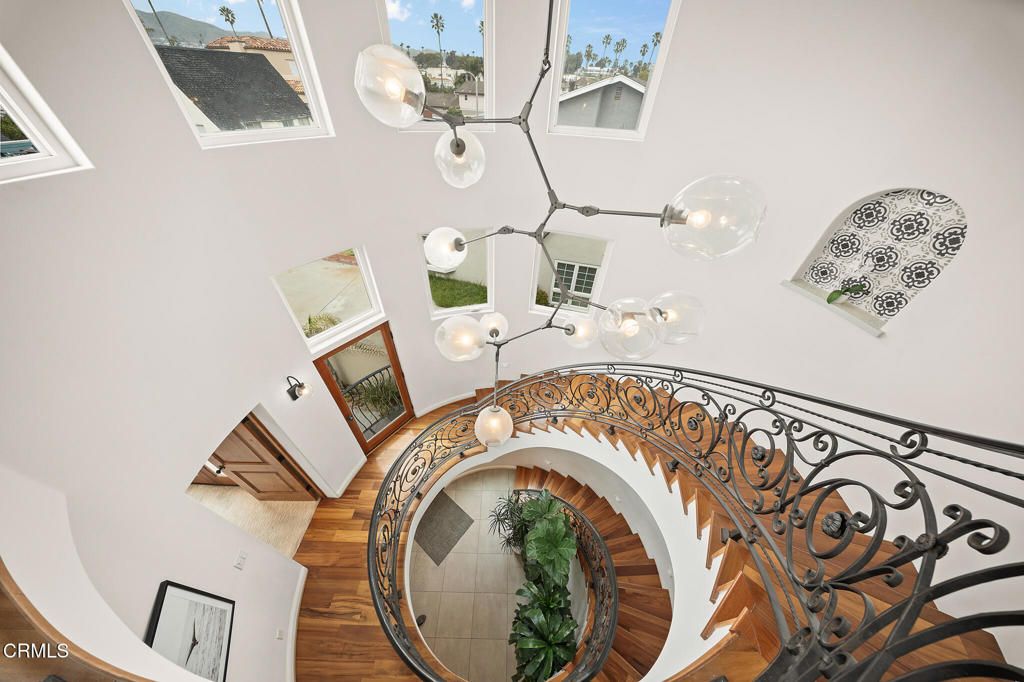 Welcome to 1158 Shelburn Lane -- the pinnacle of coastal luxury living, where elegance, precision, and comfort meet in this extraordinary residence.Spanning 3,767 square feet, the home makes a grand first impression with a striking spiral rotunda staircase that sets the tone for the sophisticated design throughout.The first floor boasts an opulent primary suite complete with a steam shower, jetted tub, spacious double vanity, fireplace, and generous walk-in closets. Step outside and experience an exceptional backyard retreat, featuring a large in-ground spa, cozy firepit, and lush surroundings -- perfect for private relaxation or entertaining. Adjacent to the primary suite is a versatile media/gym room, to suit your lifestyle.Ascend to the second level, where an open-concept design showcases a sun-drenched living room with ocean views, flowing effortlessly into the dining area and a truly spectacular chef's kitchen. The kitchen is a culinary dream, outfitted with a center island, top-of-the-line Miele, Viking, Sub-Zero and Bosch appliances, and a charming dining nook. Gather with guests on the expansive deck, soaking in the breathtaking ocean vistas. This level also includes a guest bedroom with a private deck, an office, and a full bathroom.On the third level, discover a tranquil space designed for rest and inspiration, with panoramic views of the ocean and mountains. This floor features Jack-and-Jill bedrooms with a shared full bathroom, an additional powder room, and an viewing deck -- ideal for hosting sunset gatherings or enjoying peaceful mornings.Notable additional features include comfortable driveway parking for 5 cars, oversized 4684 lot, smart fans throughout, radiant heated flooring, paid solar panels, Tigerwood flooring,Wenge wood cabinetry, custom built-ins and lighting, a two-car attached garage, mudroom, and so much more.Crafted with exquisite attention to detail, this home seamlessly blends luxurious materials with an intuitive, flowing layout, creating a truly one-of-a-kind coastal sanctuary.Set in the heart of Ventura's sought-after beachside community and offers the best of the Southern California lifestyle -- where stunning coastline, a charming downtown , vibrant dining, and easy freeway access. Whether you crave serene beach walks, adventurous surf sessions, or lively cultural experiences, Ventura's unique blend of natural beauty and community spirit is the perfect backdrop for your new dream home.