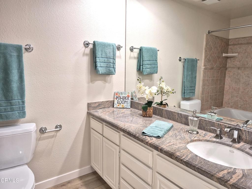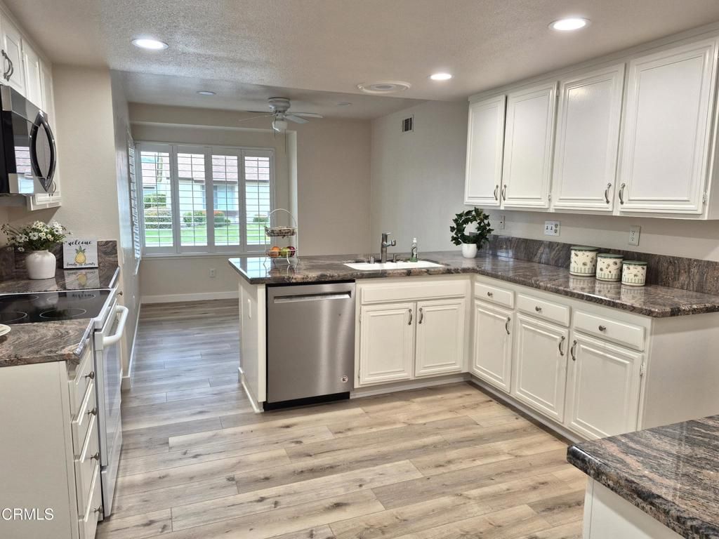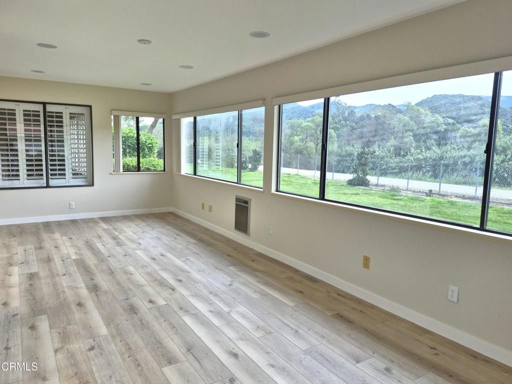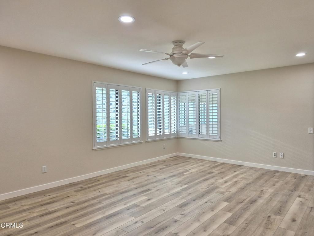 Welcome to one of the most sought-after homes in the 55+ community of Leisure Village. This highly desirable home sits on the perimeter with truly gorgeous views and no neighbors behind, offering privacy, tranquility, and a beautiful backdrop you'll enjoy every day.One of the Valencia's standout features is the layout: two spacious bedroom suites positioned on opposite sides of the home, each with its own bathroom -- perfect for guests, hobbies, or comfortable multi-purpose living. Adding to the appeal, a large portion of the patio has been enclosed to create additional living space, making the home feel even larger and more versatile. This model is one of the few that offers a spacious 2-car garage with private driveway.Recent upgrades include luxury vinyl plank flooring, fresh interior paint, and recessed lighting, creating a light, bright, and move-in-ready atmosphere. Step outside to the additional open patio area, ideal for a barbecue, table and chairs, or simply relaxing while enjoying Camarillo's year-round mild climate.Residents of Leisure Village enjoy an active, resort-style lifestyle with amenities that include a par-3 golf course, large swimming pool and spa, fitness center, tennis and pickle ball courts, billiards room, library, and countless clubs and social activities. The HOA fee covers water, sewer, trash, cable TV, high-speed internet, landscaping, exterior maintenance, roof maintenance, and 24-hour guard-gated security, providing peace of mind and low-maintenance living.Homes like this rarely come on the market -- especially with this floor plan, location, and views. This is truly the one you've been waiting for.