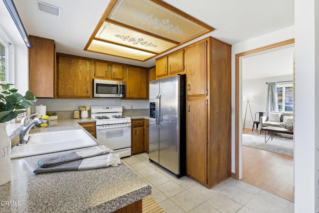 Your serene retreat awaits in this sought after 55+ gated golf course community, where luxury and nature blend seamlessly. This rare corner lot, single story 2 bedroom 2 bath home is perfectly positioned against a breathtaking mountain backdrop, offering more than just a residence, it's a lifestyle. Wake up to sweeping sunrise views over the peaks, enjoy morning coffee accompanied by the sounds of nature, and unwind with golden hour strolls along the scenic trails just in your backyard. A true standout in the community - a two car driveway, corner location, and nearby guest parking. Inside, the well maintained interior showcases neutral wood like flooring and upgraded windows. The vaulted ceilings, and a cozy fireplace create a warm and inviting living space ideal for relaxation. Recent upgrades include a newer water heater, furnace, and insulation. The dining area opens to a private, low-maintenance patio enclosed by a brand-new durable fence, perfect for enjoying the Camarillo climate. Double doors lead to the spacious primary ensuite, offering a private retreat with direct patio access for seamless indoor-outdoor living. A spacious laundry room can be converted into a bonus room or used for storage. Enjoy resort-style living with HOA amenities including a clubhouse, sparkling pool, and scenic walking trails. Hop in your golf cart and cruise to Camarillo Springs Golf Course just around the corner. Easy access to the 101 Freeway with LA and Santa Barbara 50 miles away. Embrace peaceful surroundings, modern comforts, and the ease of 55+ living - your resort lifestyle begins here.