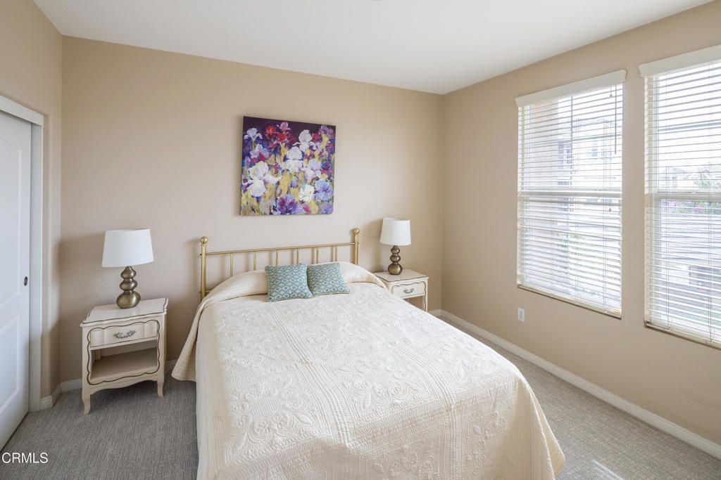 Lovely second-story corner unit in Bella Vista at Promontory Pointe, a 55+ community. This home offers 3 bedrooms, 2 bathrooms, and 1,359 square feet of living area, providing ample space to enjoy. You will enjoy the views of the park and hillsides. The spacious living room features a fireplace and opens to a large balcony that also has expansive views. The kitchen includes abundant cabinet space, granite countertops, and stainless steel appliances. The primary suite also enjoys pleasant views, multiple closets, and a spacious bathroom with dual sinks and a tub/shower combination. The hall bathroom features a large walk-in curbless shower. Additional amenities include indoor laundry, air conditioning, a water softening system, and a two-car tandem garage. Residents enjoy resort-style amenities including a clubhouse, pool, spa, and a full calendar of community events. The community is adjacent to Montalvo Hill Park and just steps from shopping, dining, fitness, and everyday conveniences. Located less than 10 minutes from the beach.