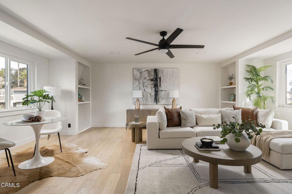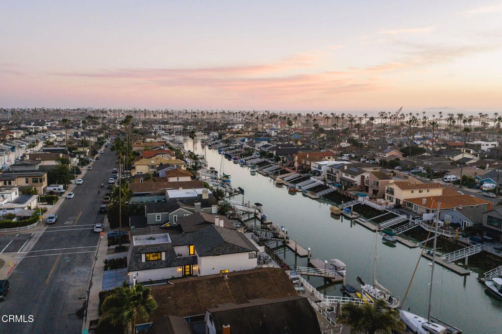 Exceptional waterfront home offering refined coastal living in the heart of the Ventura Keys. This four bedroom, three bath residence plus bonus room has been thoughtfully updated throughout.The first level features an open kitchen, dining, and living area filled with natural light and oriented toward the water. Engineered French oak flooring and rift sawn white oak cabinetry set a warm, modern tone, while new windows and doors create seamless access to the expansive waterside patio. The first level also includes a bedroom and full bath, indoor laundry, and direct access to the attached two car garage.Upstairs, the home offers three additional bedrooms, including the primary suite with an oversized walk in closet. A dedicated bonus room provides flexible space for a home office, media room, or additional lounge area.Outdoor living is a standout feature, with a generous patio and fire pit overlooking the channel and a private 35 foot boat dock. Additional upgrades include a new roof and new HVAC system.The voluntary homeowners association offers access to two private beaches, pickleball courts, a basketball court, and community barbecues. A turnkey waterfront opportunity combining modern updates, generous outdoor space, and one of Ventura's most desirable coastal neighborhoods.