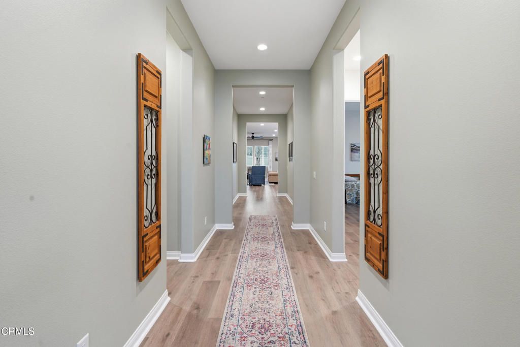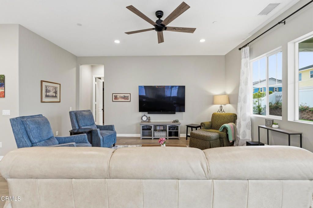 Wonderful opportunity to own this beautiful single-story Orchard home in the highly desirable Heritage Grove community of Fillmore! Situated on a nearly 10,000 sq. ft. premium lot, this spacious 2663sqft residence offers 4 bedrooms and 3.5 bathrooms with a thoughtfully designed floor plan ideal for comfortable living, multigenerational needs, and effortless entertaining.Upon entry, you'll find a generously sized bedroom with a full bath to the left--perfect for guests or extended family. To the right are two additional bedrooms with access to a full bathroom featuring dual vanities and a tub/shower combination. Each bedroom is equipped with its own ceiling fan for added comfort. The home showcases upgraded paint throughout, luxury vinyl plank flooring, and additional lighting that enhances its bright and inviting atmosphere. TVs are included.The open-concept kitchen is a true centerpiece, featuring a large island, massive walk-in pantry, upgraded appliance package, full designer backsplash, abundant cabinetry, and a reverse osmosis water filtration system. It flows seamlessly into the main living areas, making it perfect for gatherings both large and small.The spacious primary suite offers a massive walk-in closet and a beautifully appointed bathroom with custom tile flooring that complements the backsplash. A convenient indoor laundry room with dual access adds everyday functionality.Step outside to enjoy the covered rear patio--complete with a Gas BBQ included and ready for entertaining. The expansive backyard boasts approximately $50,000 in upgrades, allowing you to enjoy it from day one. A side walkway provides easy access around the home.Additional highlights include a 3-car tandem garage offering ample space for vehicles, storage, a home gym, or potential ADU conversion (buyer to verify with appropriate authorities). The wide right side yard may be perfect to accommodate RV access.This newer home combines modern upgrades, premium lot size, and exceptional functionality--all in one in Fillmore's most sought-after communities.Don't miss this incredible opportunity--schedule your showing today before it's gone!