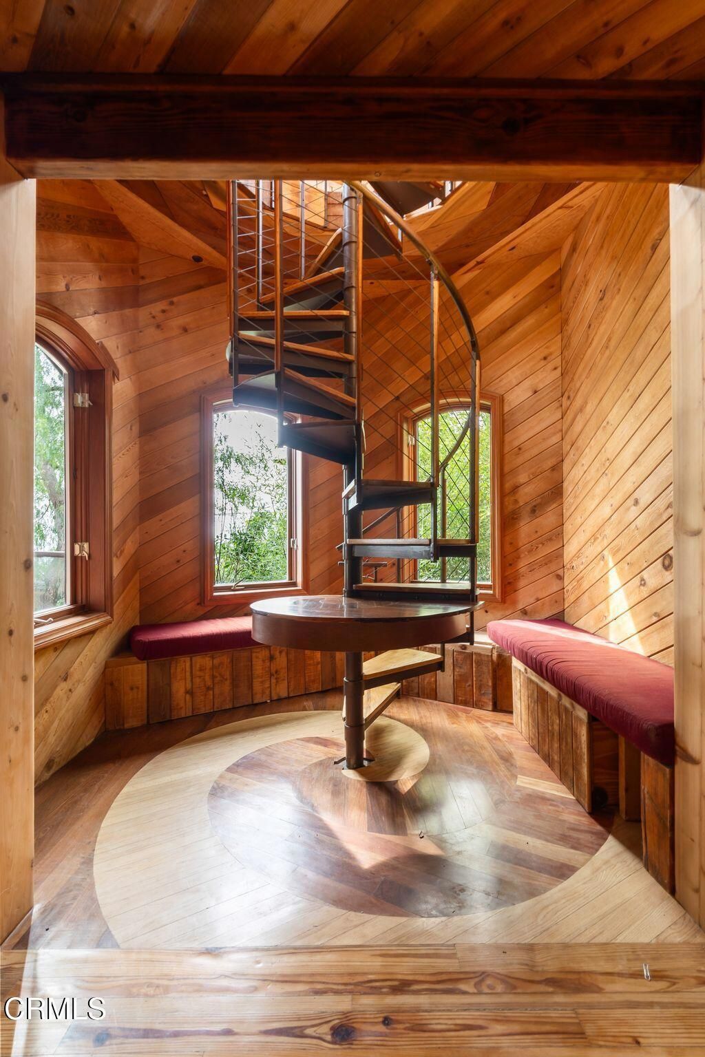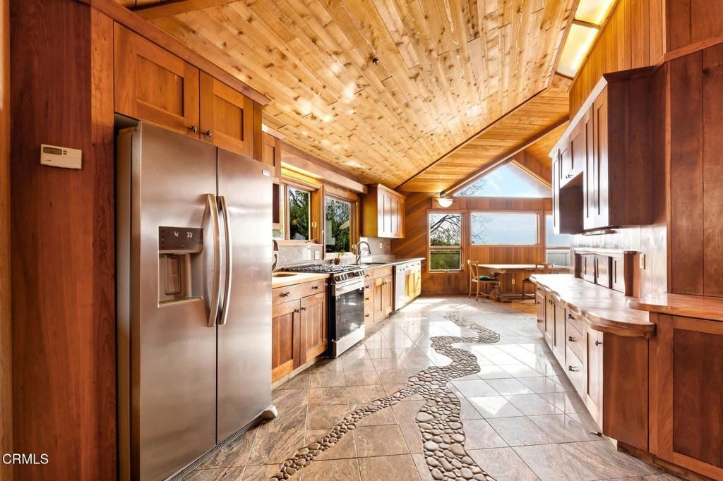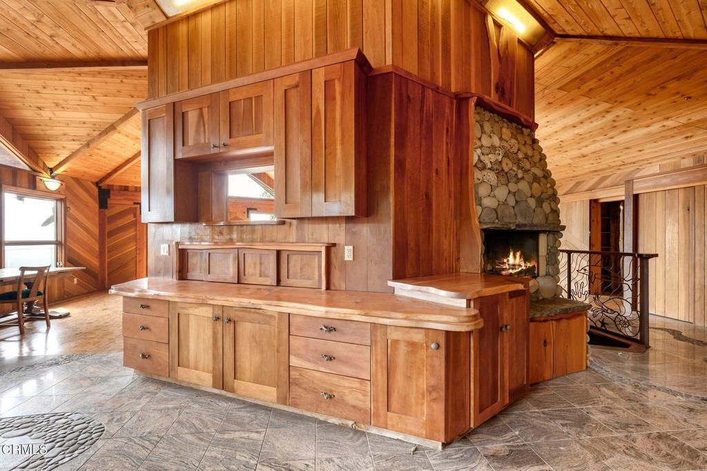 Perched high in the Ventura foothills on an exceptionally private estate lot, this one-of-a-kind residence commands breathtaking 280-degree panoramic views spanning the Pacific Ocean, coastline, harbor, pier, mountains, and city lights. Awe-inspiring ocean vistas can be enjoyed from nearly every room, the wrap-around decks & the fourth-story tower which is a true architectural showpiece. 440 Mariposa was designed & built in 1999 by the owner, Frank Peterson, in a Frank Lloyd Wright style known as Organic Architecture, that harmonizes structure with the natural environment.Its hexagonal design, handcrafted woodwork, and flowing, interconnected rooms centered around a massive, central fireplace are key elements of Wright's architectural style. Being environmentally conscious, Peterson installed a copper roof that was ingeniously engineered to channel rainwater into an underground well. Some of the many creative touches include a custom marble floor embedded with pebbles in the shape of a stream, a wrought iron railing depicting various sea animals, a handcrafted stained-glass entry, and a garage door embellished with a hand carved frieze.Both the lower level & the west wing are self-contained guest units with kitchenettes, full baths & private entrances. A truly unforgettable residence that is designed to inspire, impress, and endure.