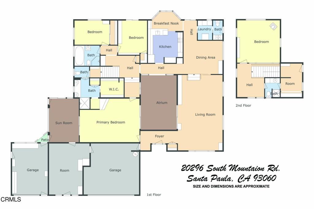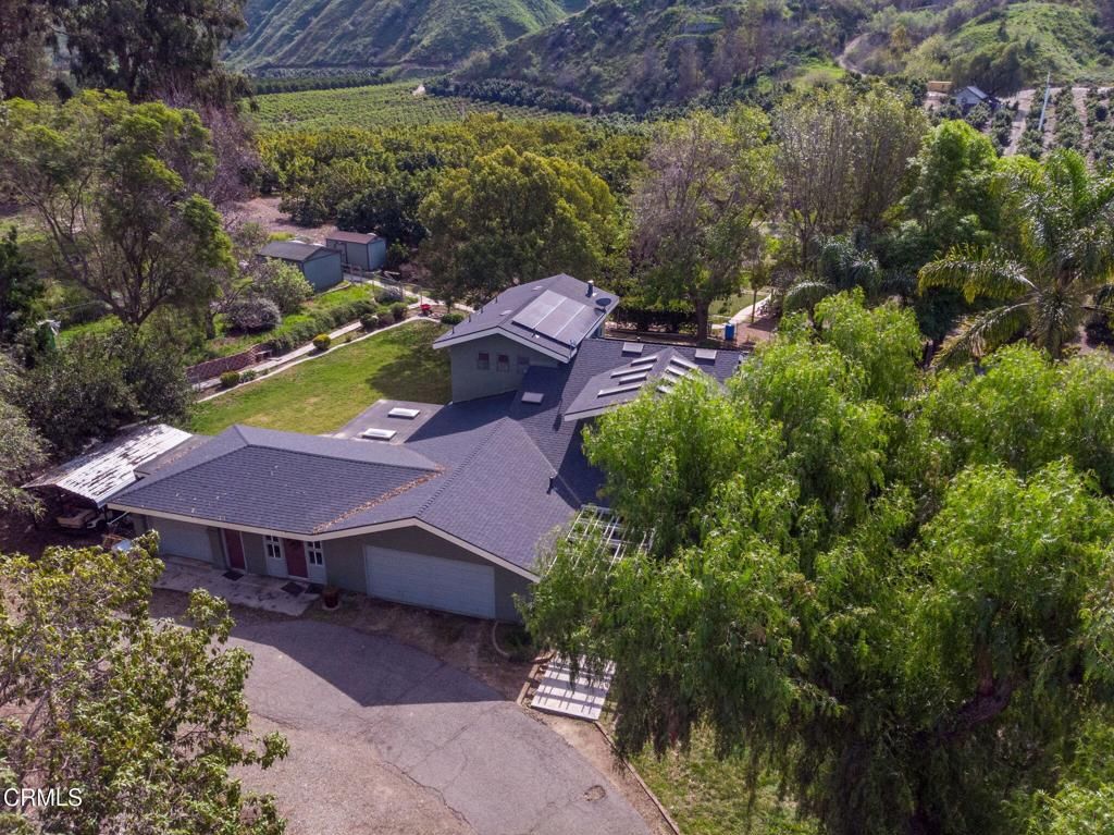 Exceptional agricultural estate offering residential living with established grove potential in the desirable South Mountain corridor of Santa Paula. This property presents a rare opportunity to enjoy privacy, acreage, and agricultural use within a versatile residential setting. The main home, built in 1994, features 4 bedrooms and 3 bathrooms with a primarily single-level layout and an additional upstairs bedroom/office space. Interior amenities include central heating, central air conditioning, an additional window cooling unit, and a wood-burning fireplace in the main living area. An above-ground spa enhances outdoor enjoyment and relaxation. Garage space totals approximately 1,000 square feet, originally designed as a four-car garage, with one bay converted to an office. Ample on-site parking provides flexibility for multiple vehicles, equipment, or guest accommodations. Zoned agricultural, the property includes approximately 275+ mature avocado trees and select citrus trees, offering established grove infrastructure and potential agricultural use (buyer to verify production and zoning). The expansive land provides privacy and opportunity for rural living with modern conveniences.