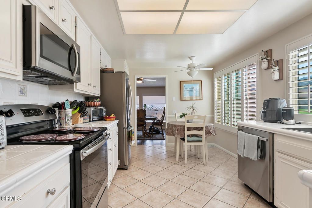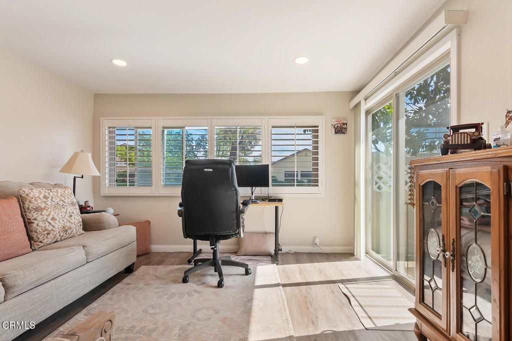Rare opportunity to own one of the largest homes in The Village. What makes this one so special is that 2 people could live in this home, each with their own bedroom PLUS their own sitting area/office/craft or reading room. In addition to the large den that comes standard with this model, this particular home also has another room off the living room AND it has an outdoor patio. This move-in ready home offers exceptional space, major upgrades, and the active adult lifestyle buyers are searching for in Camarillo real estate.With vaulted ceilings, the expansive living room opens through French doors to a patio enclosure bonus room, creating flexible indoor-outdoor living space. The oversized den/family room features a wood-burning fireplace and provides endless possibilities on how to use this large room - some people even use it as a dining room for entertaining. Extensive system upgrades make this Leisure Village Camarillo 55+ home for sale especially attractive: HVAC (12/5/2024), water heater (3/9/2022), electrical panel (2022), dual-pane windows and slider (2019), and a new block patio wall with privacy trellis (2021). Additional improvements include tile and vinyl wood-look flooring (2019), carpet (2019), updated toilets (2019), shower door (2020), plantation shutters (2020), new dining room blinds (2020), replaced interior doors, ceiling fans, pull-down ladder access to a very large attic, and washer, dryer, refrigerator, and new sink (2019). The kitchen features stainless steel appliances including dishwasher, oven, and refrigerator, along with convenient pull-out pantry shelving.Located inside the guard-gated Leisure Village 55+ community in Camarillo, residents enjoy 24-hour security, an 18-hole par-3 golf course, heated pool and spa, fitness center, tennis, pickleball, woodshop, ceramics studio, billiards, library, RV parking (fee), and dozens of clubs and social activities. Beautiful greenbelts and walking paths make Leisure Village one of the most desirable active adult communities in Ventura County.The HOA includes cable TV, internet, water, trash, sewer, exterior maintenance (including roof), landscaping, security, and full access to amenities -- offering simplified, predictable living.If you are searching for the largest floor plan in Leisure Village Camarillo 55+ community, this La Jolla model stands out for condition, upgrades, and lifestyle value. Homes like this do not last long.